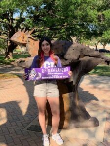 is from Arlington, Texas, and is a member of Rush Creek Christian Church. Some of her interests include watching movies, reading, crocheting, and hanging out with friends. She is a member of the National Honor Society, Spanish National Honor Society, and Youth Ministry Council, and she is excited to join new clubs once her university studies begin. In the fall she will be attending Texas Christian University and plans to major in Environmental Science